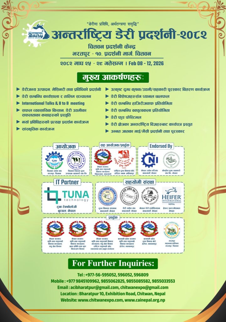 चितवन । नारायणगढस्थित होटल सिद्धार्थले आफ्नो २८औँ वार्षिकोत्सव विभिन्न सामाजिक उत्तरदायित्वका कार्यक्रम आयोजना गरी सम्पन्न गरेको छ। वार्षिकोत्सवको अवसरमा होटलले सिद्धेश्वर मन्दिर नारायणगढमा मन्दिर परिसर सरसफाइ, देवघाट समाज केन्द्रमा आश्रित बृद्धबृद्धाहरूलाई भोजन वितरण र होटलमा रक्तदान कार्यक्रम आयोजना गरेको थियो।...