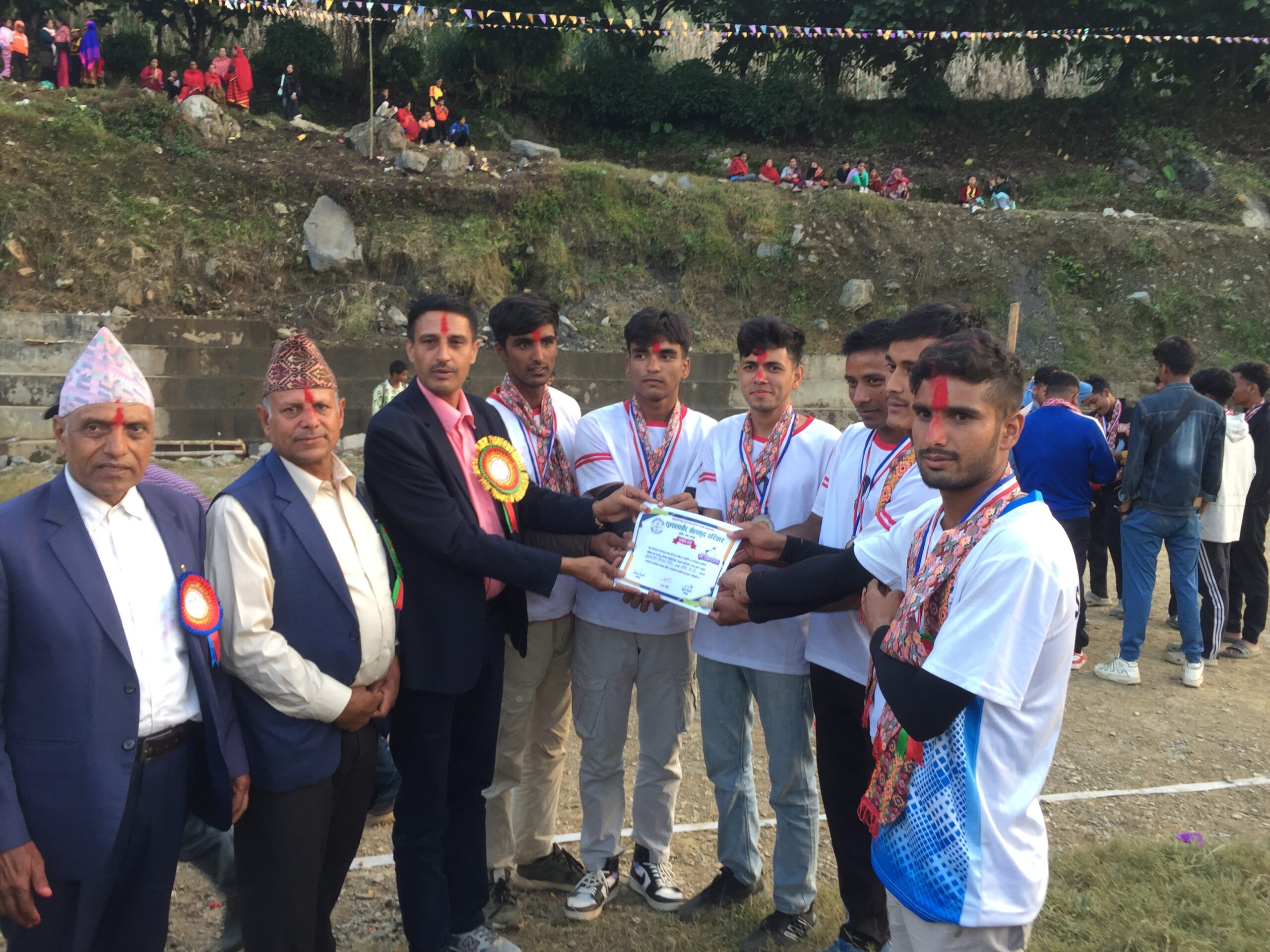 पुरस्कार लिदै आयोजक सुन्तलाचौर खेलकुद परिवारको टिम
