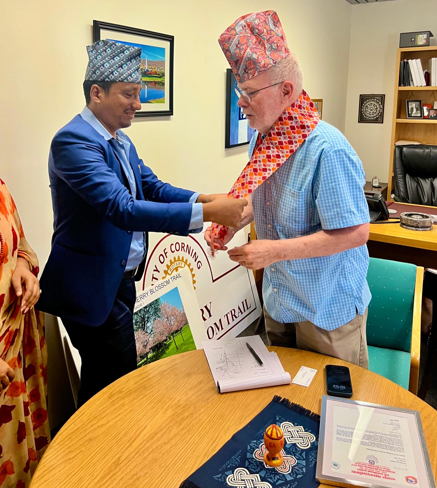 कोर्निङ सिटिका मेयर सग भेटको क्रममा पन्तले चितवनको पर्यटन प्रवर्द्धनमा उल्लेखनीय भूमिका खेल्दै कोर्निङका मेयरलाई चितवन पर्यटनको समग्र जानकारी समावेश गरिएको तत्कालीन उद्योग बाणिज्य संघ- चितवन ले प्रकाशित सुन्दर र सुसंस्कृत “चितवन पर्यटन पुस्तिका” प्रदान गरे। साथै, भरतपुर महानगरपालिकाकी प्रमुख श्री रेनु दाहालको तर्फबाट पठाइएको स्वागत तथा शुभकामना पत्र मेयर बोल्यान्डलाई हस्तान्तरण गरे। नेपालको सांस्कृतिक सम्मानको प्रतीकस्वरूप उनले कोर्निङका मेयरलाई नेपाली ढाका टोपी समेत पहिराएर विशेष सम्मान व्यक्त गरे, जसले दुई देशबीचको मित्रताको भावना थप प्रगाढ बनायो। उक्त सम्वाद पछि मेयर बोल्यान्ड ले भरतपुरका मेयरका लागि आफ्नो सहर अङ्कित लोगो चिनारी स्वरूप हस्तान्तरण गर्दै आगामी दिनमा थप छलफल गरि सम्बन्ध स्थापित गर्न आफू उत्साहित रहेको कुरा जानकारी समेत गराए, यस अघि उक्त शहर ले जापान, इटली तथा युक्रेनका सहर हरु सग भगिनी सम्बन्ध कायम गरिसकेको र अब चौथो शहरको रुपमा भरतपुर सग सहकार्य गर्ने प्रतिबद्धता समेत जनाए।